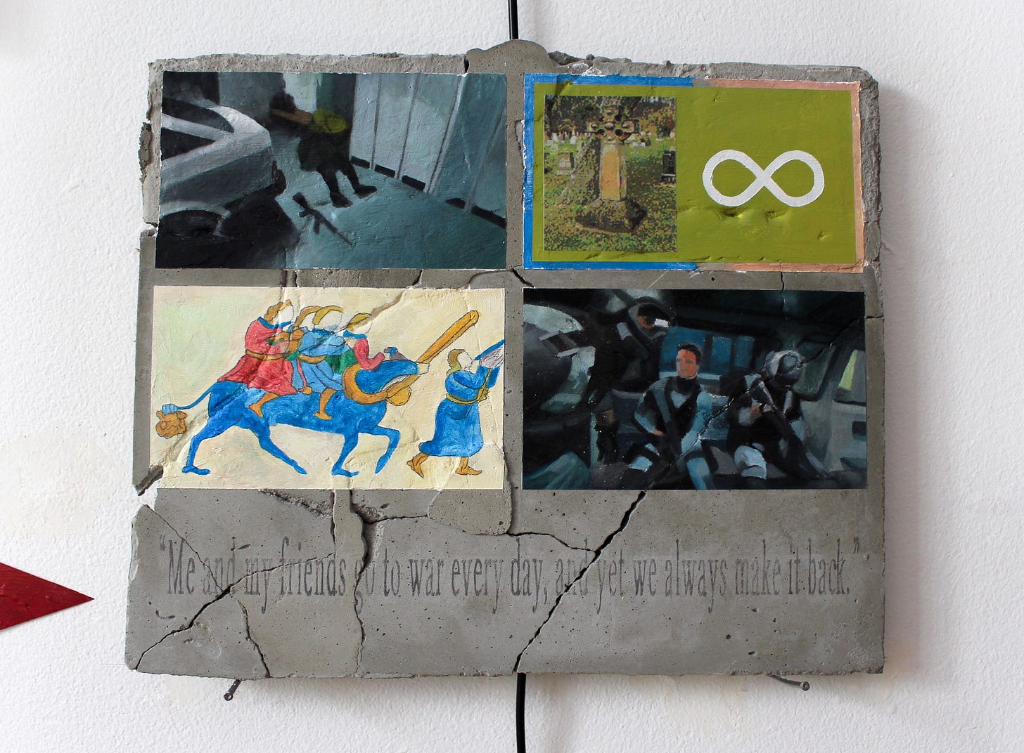 My process is split between traditional painting techniques, installation and digital art. The results are multi media collages meant to echo the lack of clear visual identity that is characteristic of our hyper mediated cultural landscape.