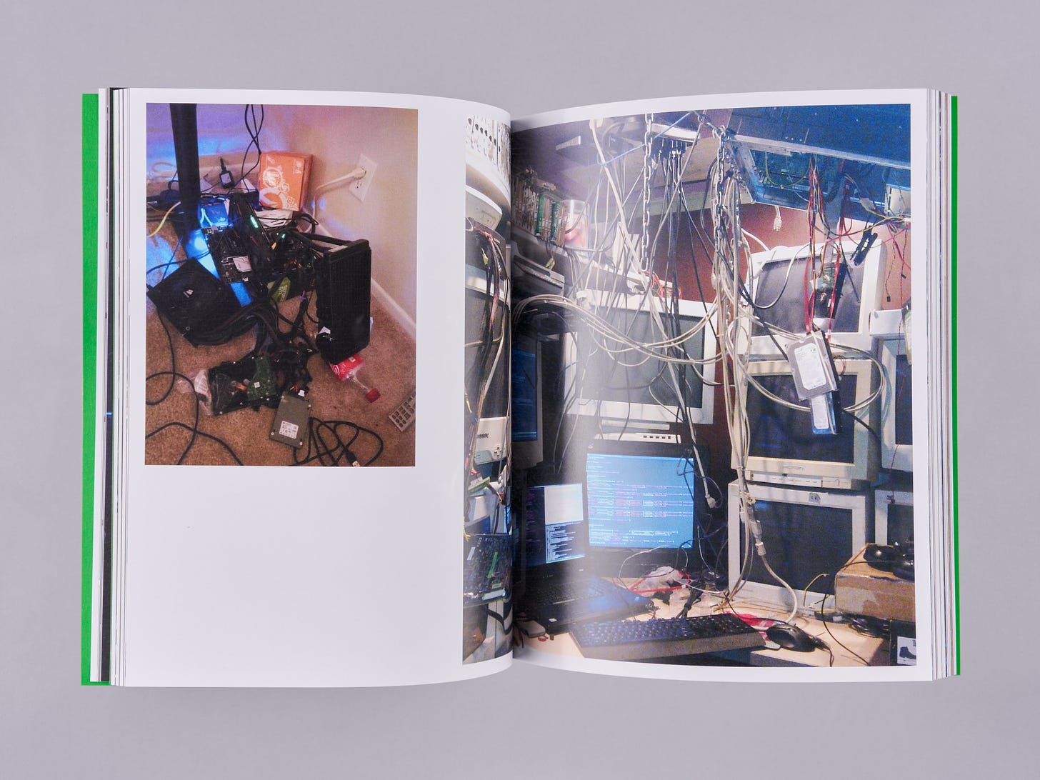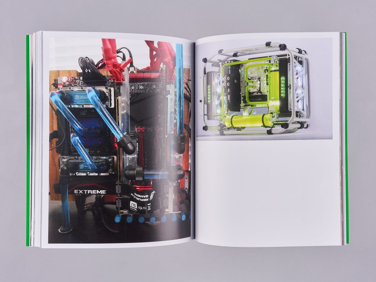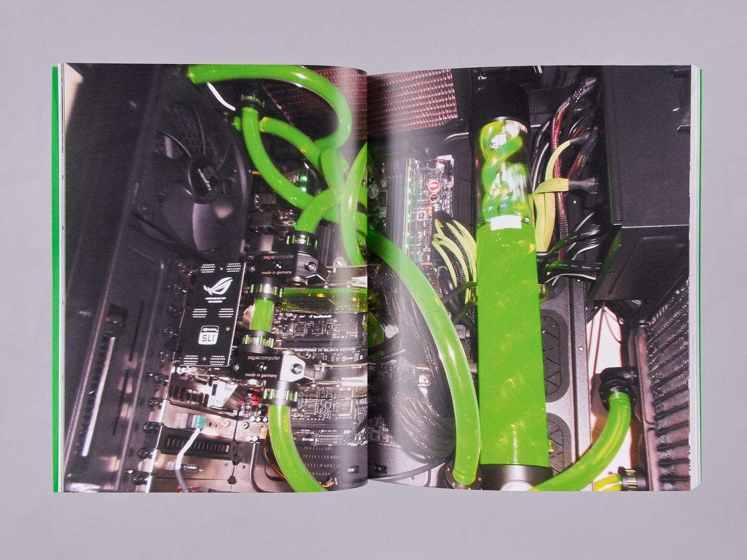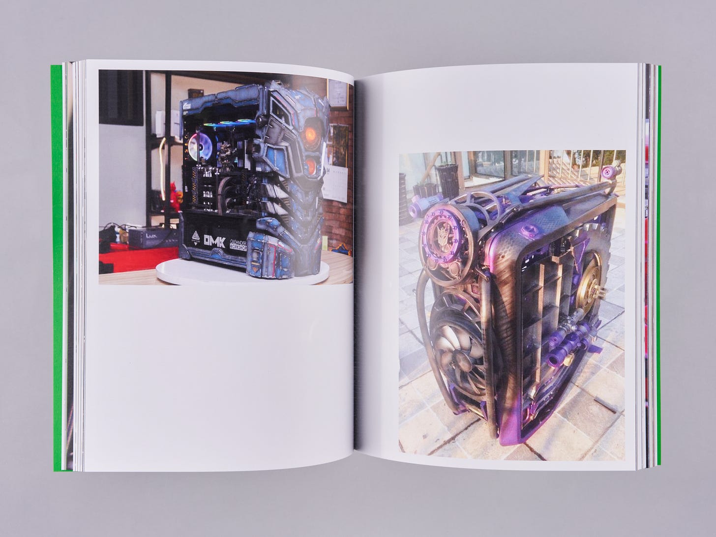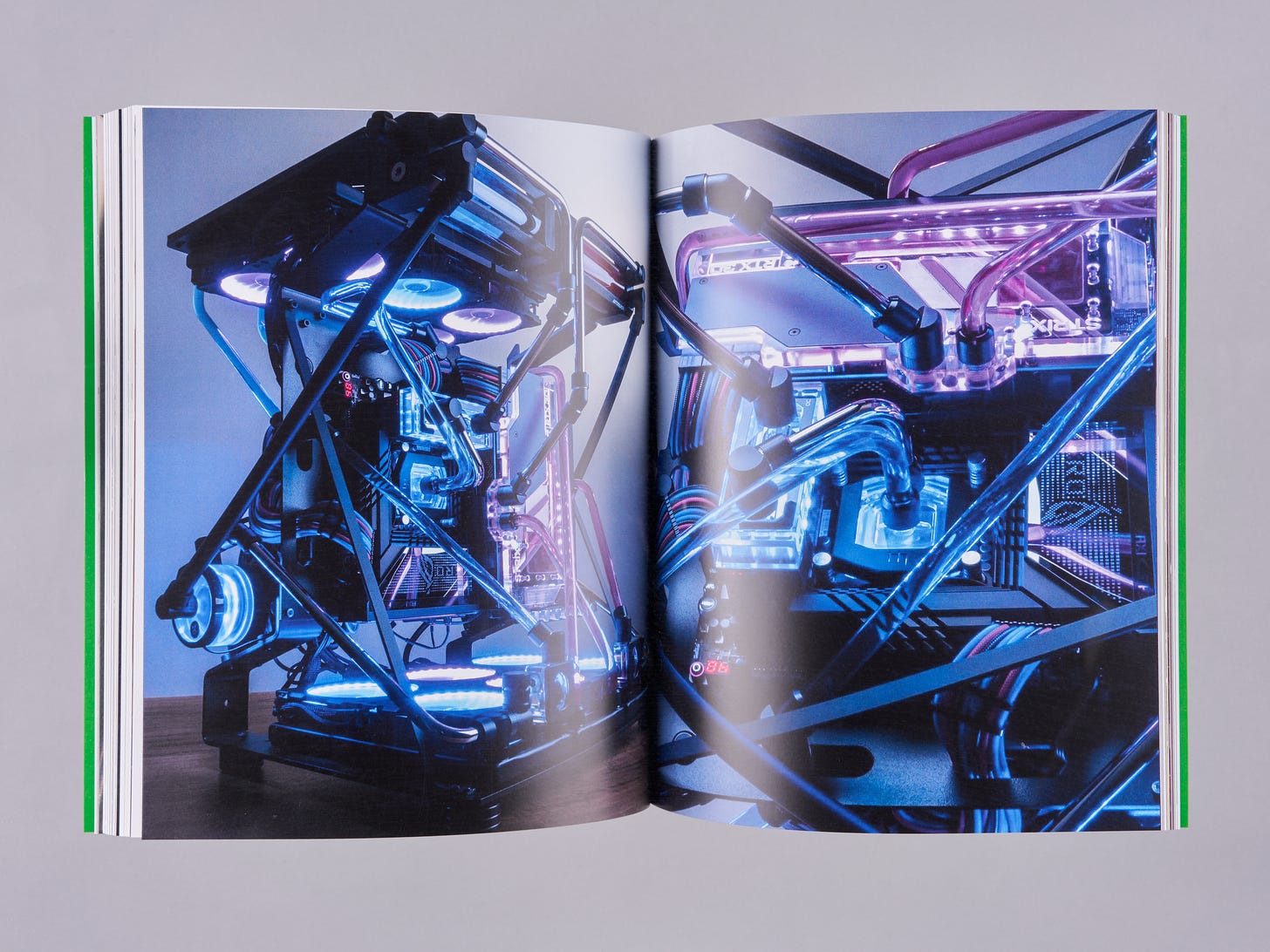 The Personal Computer is bodily and grotesque - it fetishizes its thingness. It exists in a lineage of aesthetic machines that deal with their inherent constraints as if they are formal challenges to make meaning through. Because the configuration of computer components hasn’t shifted for 30 years it became the frame through which to make aesthetic gestures. These gestures are defined by ‘Computer Modders’ that have been around since the 90’s, building a historical genealogy of objects, and a sculptural language to communicate through. For many artists, myself included, the computer is an object that wholly facilitates the creation of an artwork. It is an idea’s site of inception, the place where the idea is iterated and developed, the tool through which the idea is produced into an artwork, and the object through which the work is exhibited. It is imperative for artists working with computers - particularly in ways that require the machine to display the work - to address the materiality of the computer. That is not to say that artworks that are, for instance using simulation, must center the computer - but, if one chooses to aestheticize it, there is a history and lineage to reference, pull from, and speak to. This book is a curated slice of that history. I have been collecting and categorizing these images since 2014, and the bulk of the collection spans from 2002-2022. It is a compilation of more than 400 builds through which a clear aesthetic language is developed. A vector is drawn between computers made in 2002 and those made in 2022 because of the iterative and constricting framework of the practice, but this limitation is the basis of some of the wildest sculptural gestures and propositions. There is a real sense that Computer Modding is a contemporary folk art: It concerns itself with the aesthetic reflection of a community and that community’s cultural life. Much like other folk art, these aesthetics get folded into contemporary art making without a sense of criticality or understanding of the direct referent. Therefore, the art’s gesture fails to meaningfully contribute to either the culture and community of Computer Modding, or to that of Art. As the use of computers becomes increasingly more commonplace in artists' practices, my hope is that we as artists look to the Computer Modders (the aesthetes of the Personal Computer) to continue and contribute to a sculptural dialogue that was set in motion outside of the brackets of art.