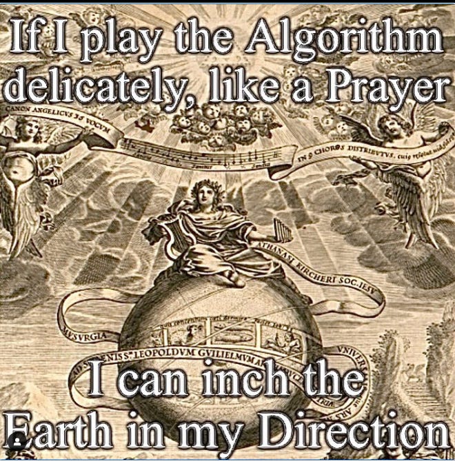 It seems obvious at this point to say that religion is on the rise in the ‘cool’ places of the internet. From trad caths and God-posting, hustle-spiritualism and the now fully mainstream hyper detailed astrology, it seems like everyone believes in some sort of magic or non-natural force that governs reality. While I think some of these communities are going about it in the wrong way or are just factually wrong in their construction of reality, overall, I am generally sympathetic to these magical belief structures. In my own life there have been times when I’ve experienced a vacuum of meaning. Material conditions are rapidly worsening for most people. Collective belief around normal things feels harder to establish. Reality feels shattered, why not take up the shards and mosaic a new world into being. It's useful to understand the mechanics of this rise in the current moment. In this explanation I’ll try to address what I understand to be the root philosophical causes for this crusade in conjunction with the contemporary media dynamics that make this rise in spiritual identity inevitable. Finally, I’ll give some brief thoughts on whether the contemporary faith centered communities on the internet have the potential to actualize a better world.
