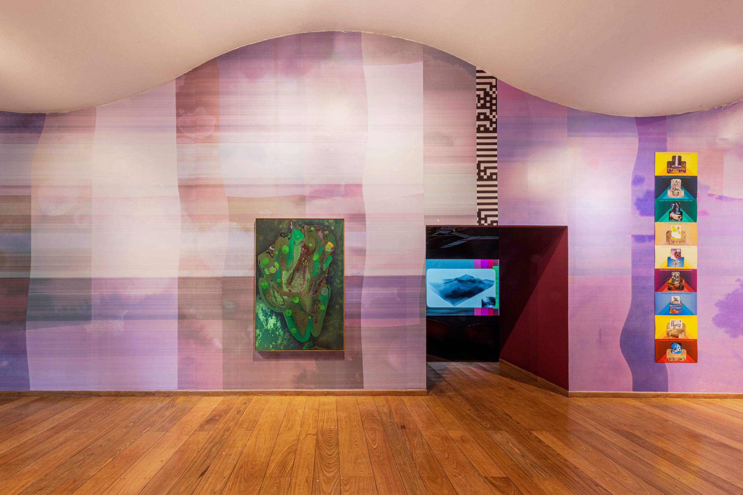 In Jonah Freeman: Soft Math (Cloud in the Eyes), the artist evokes a logic that is neither strictly computational nor purely organic. This pliable and generative order mirrors the ambiguous terrain of our hyperconnected world. It echoes the work of John Von Neumann’s Cellular Automata, in which complex, lifelike behaviors emerge from simple digital rules. Pixels flicker on and off, forming new structures that suggest evolution, and even intelligence. Freeman reveals a world where computation no longer imitates nature—it becomes indistinguishable from it.