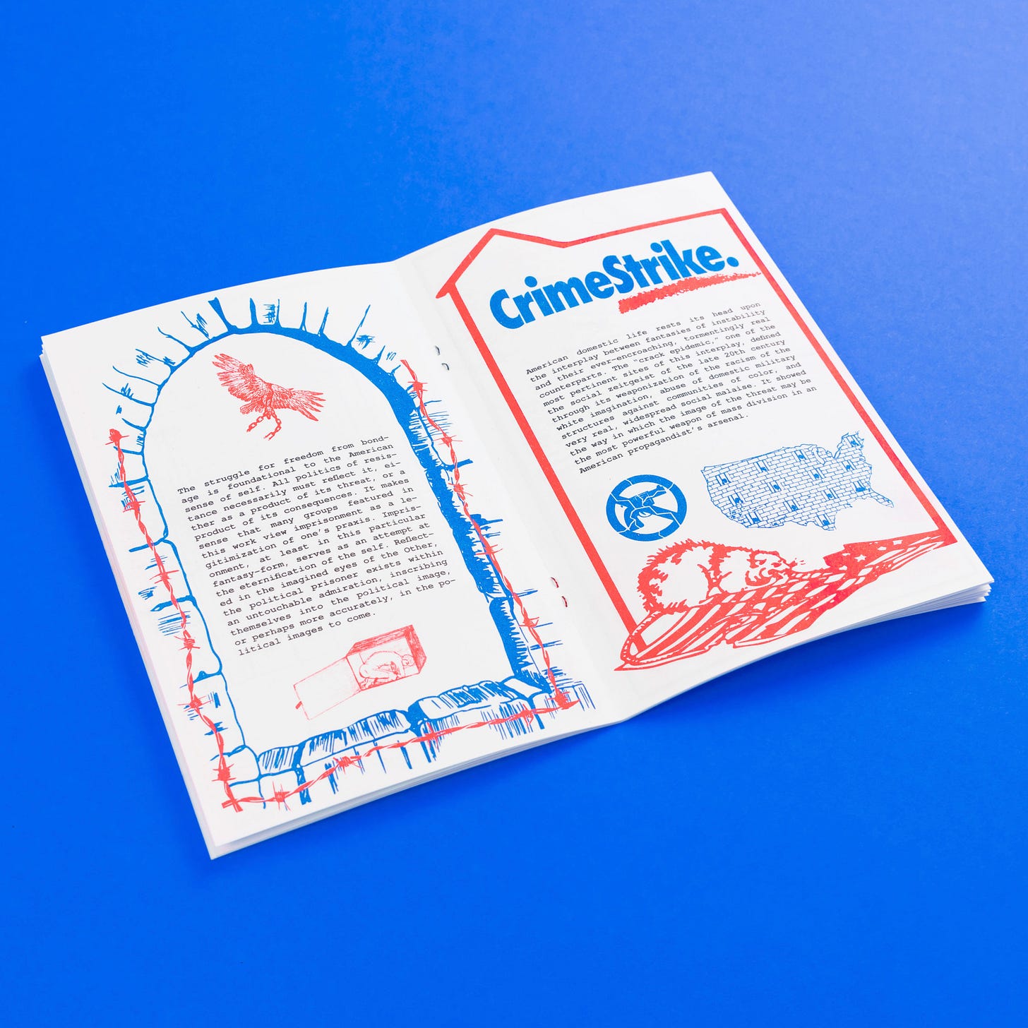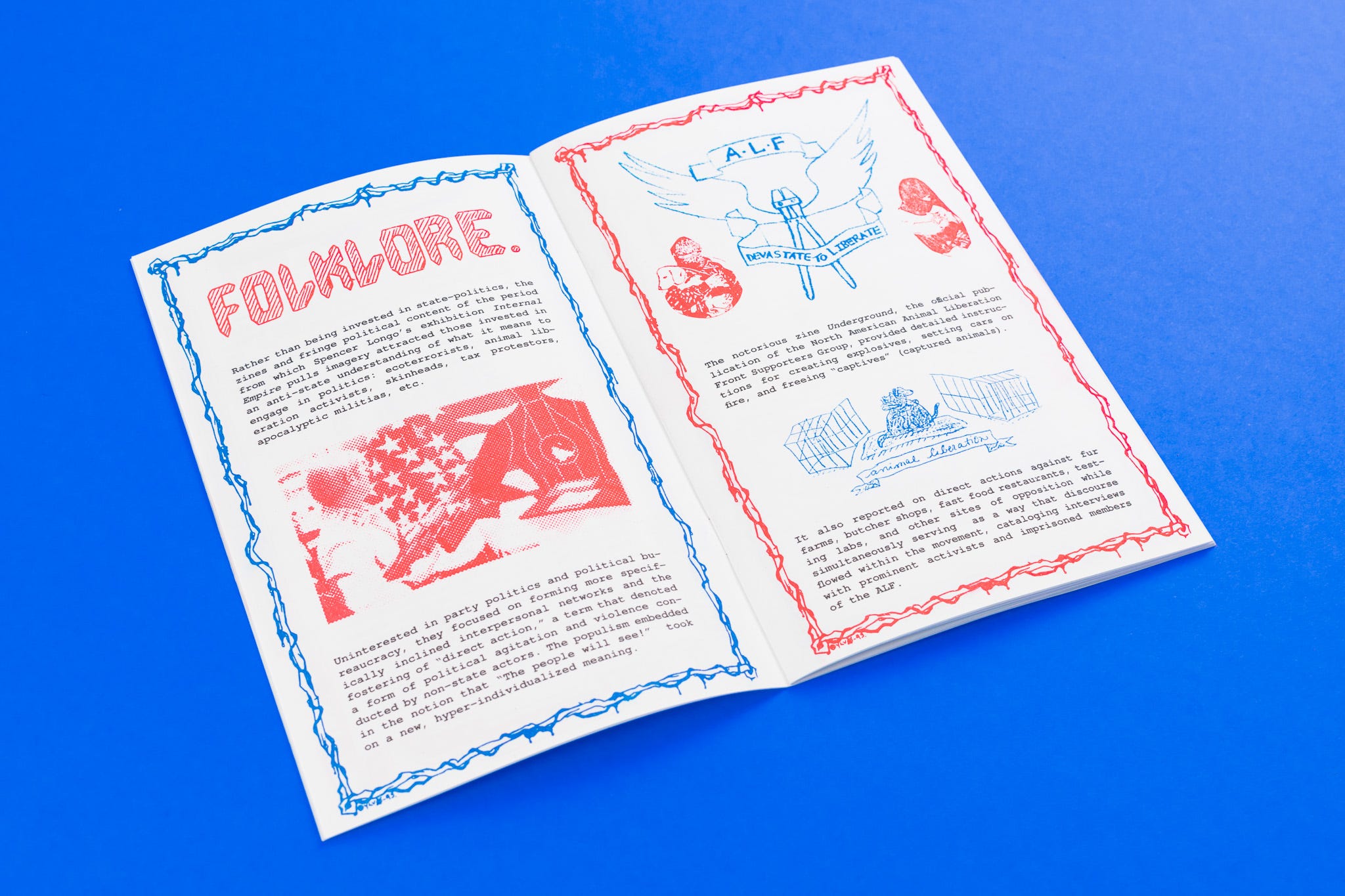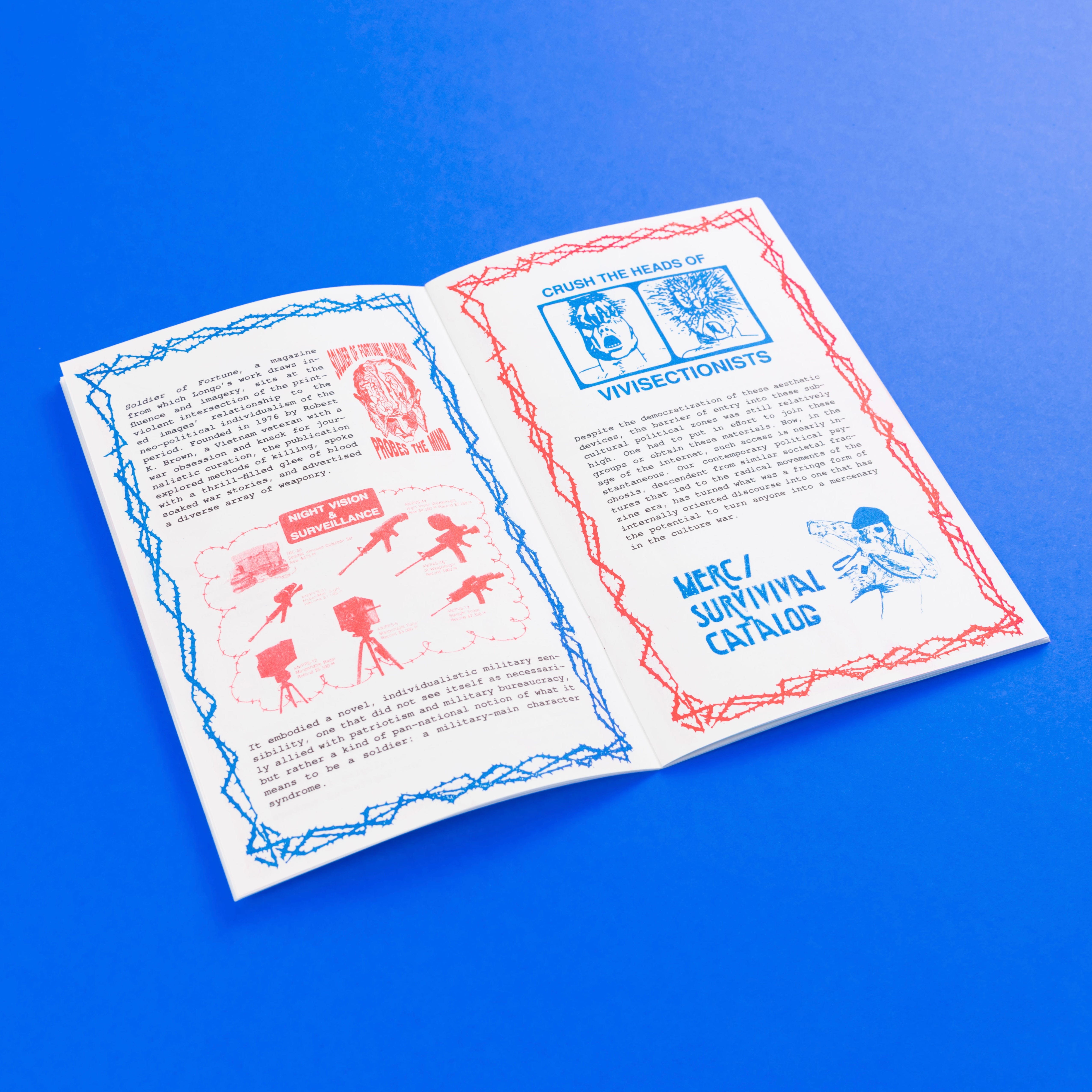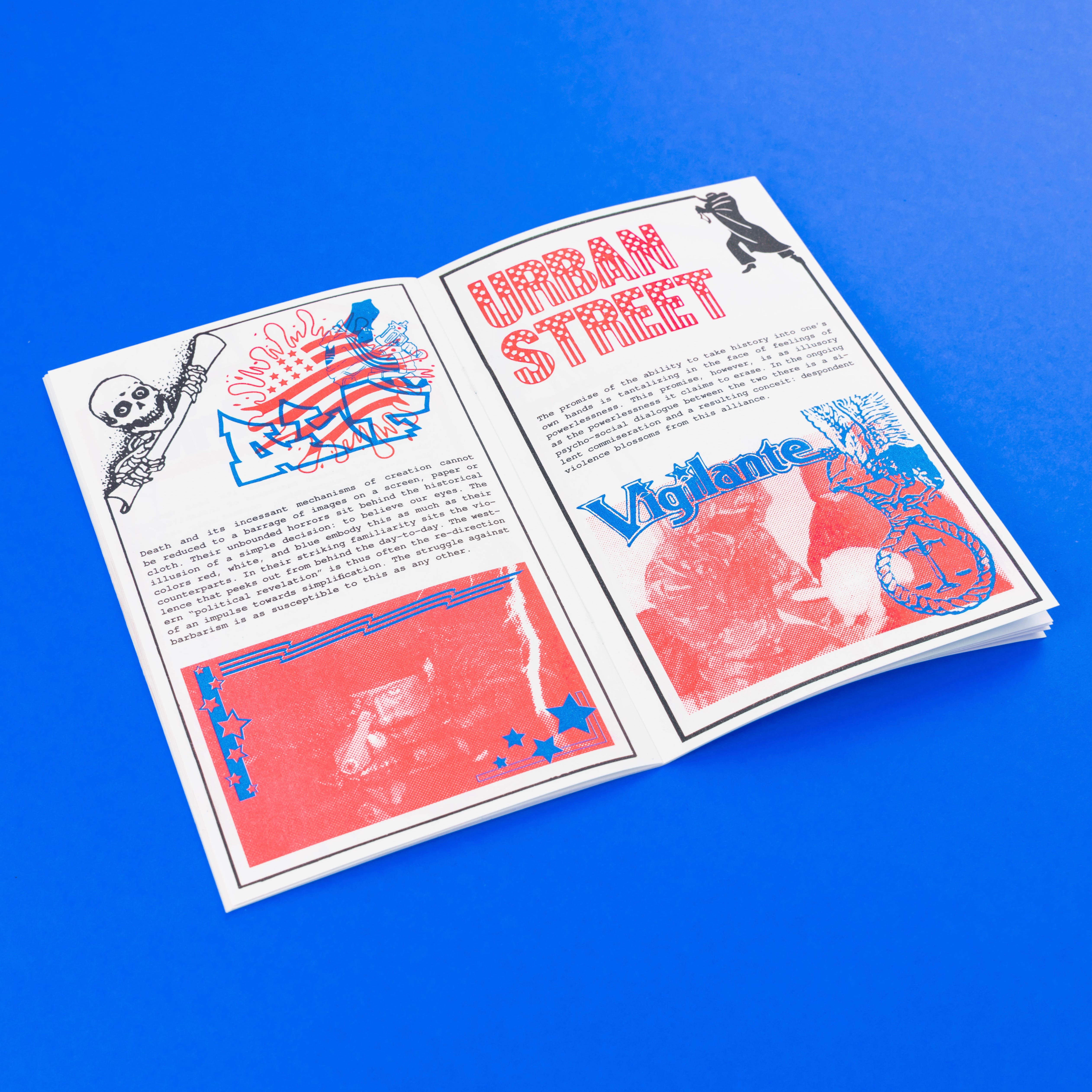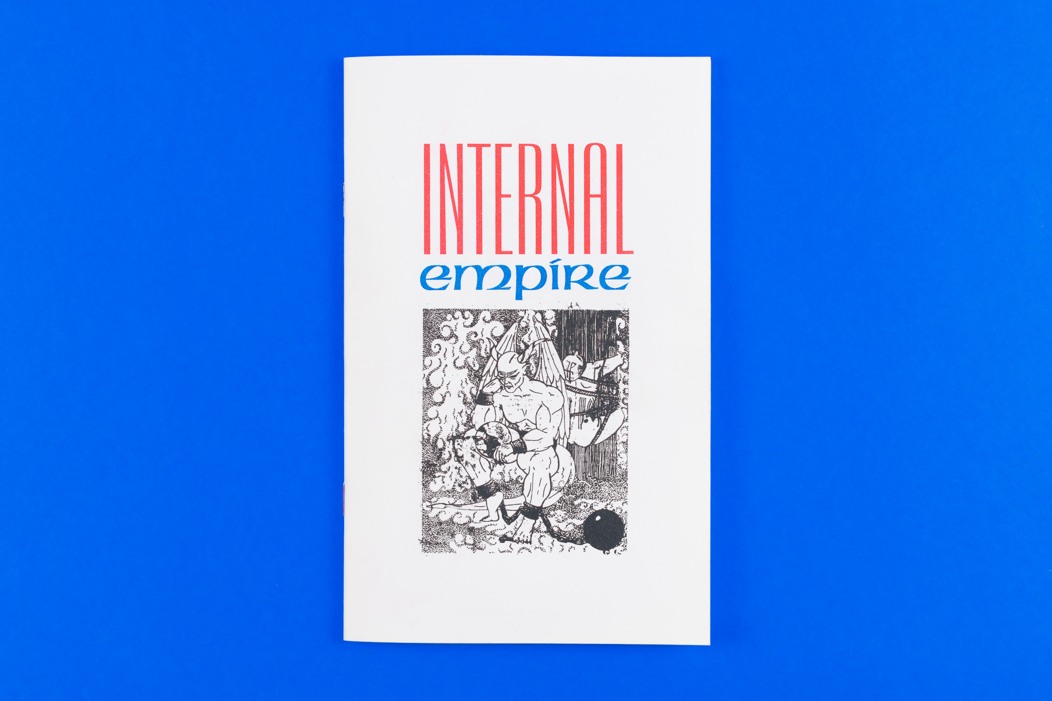 Limited edition, hand-numbered Risograph zine printed in conjunction with Spencer Longo’s exhibition ‘Internal Empire’ at TORUS. 20 pages, 3 color risograph, bound with custom blue and red staples in a hand-numbered, edition of 200.