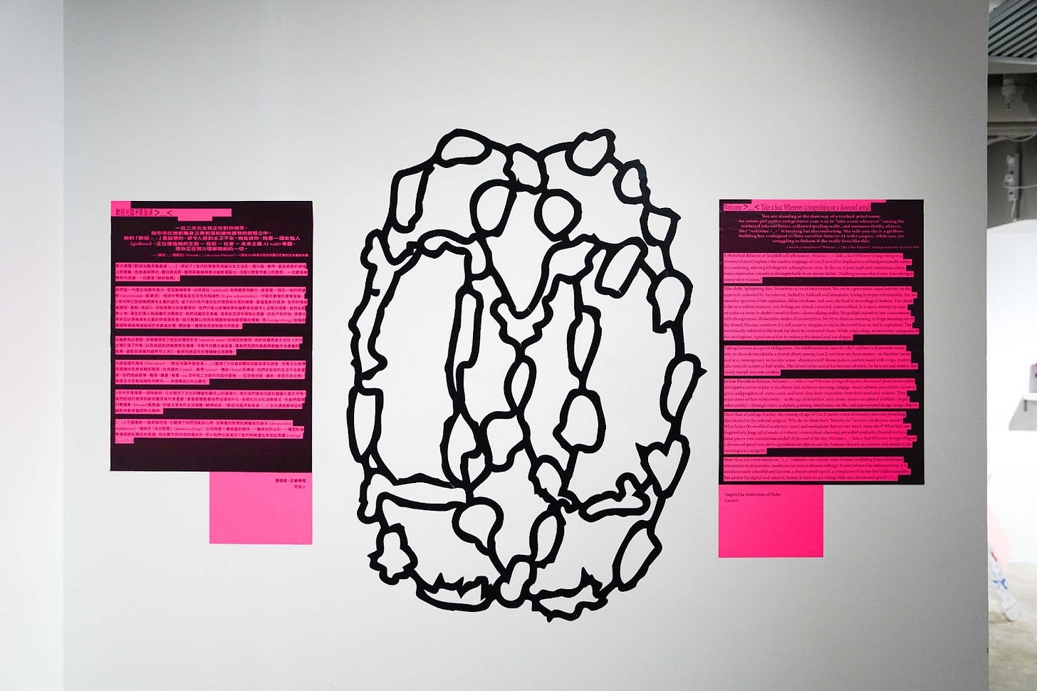 More than a hard age bracket, the coming-of-age of Gen Z marks a turn of morality and ever polarising direction(s) in the cultural zeitgeist. Why do we think that’s “literally me” in every wholesome meme? What belies the wealth of aesthetics, ‘cores’, and neologisms that we very much chase after? What fuels our fragmentary, long-tailed mode of cultural consumption, choosing paywalled podcasts, Discord servers, think pieces over mainstream media? At the end of the day, “Welcome >_< Take a Seat Wherever (cringevibing on a downward spiral)” sets out to apprehend art objects and the humour rhetoric as a mirror and mould of the contemporary zeitgeist.