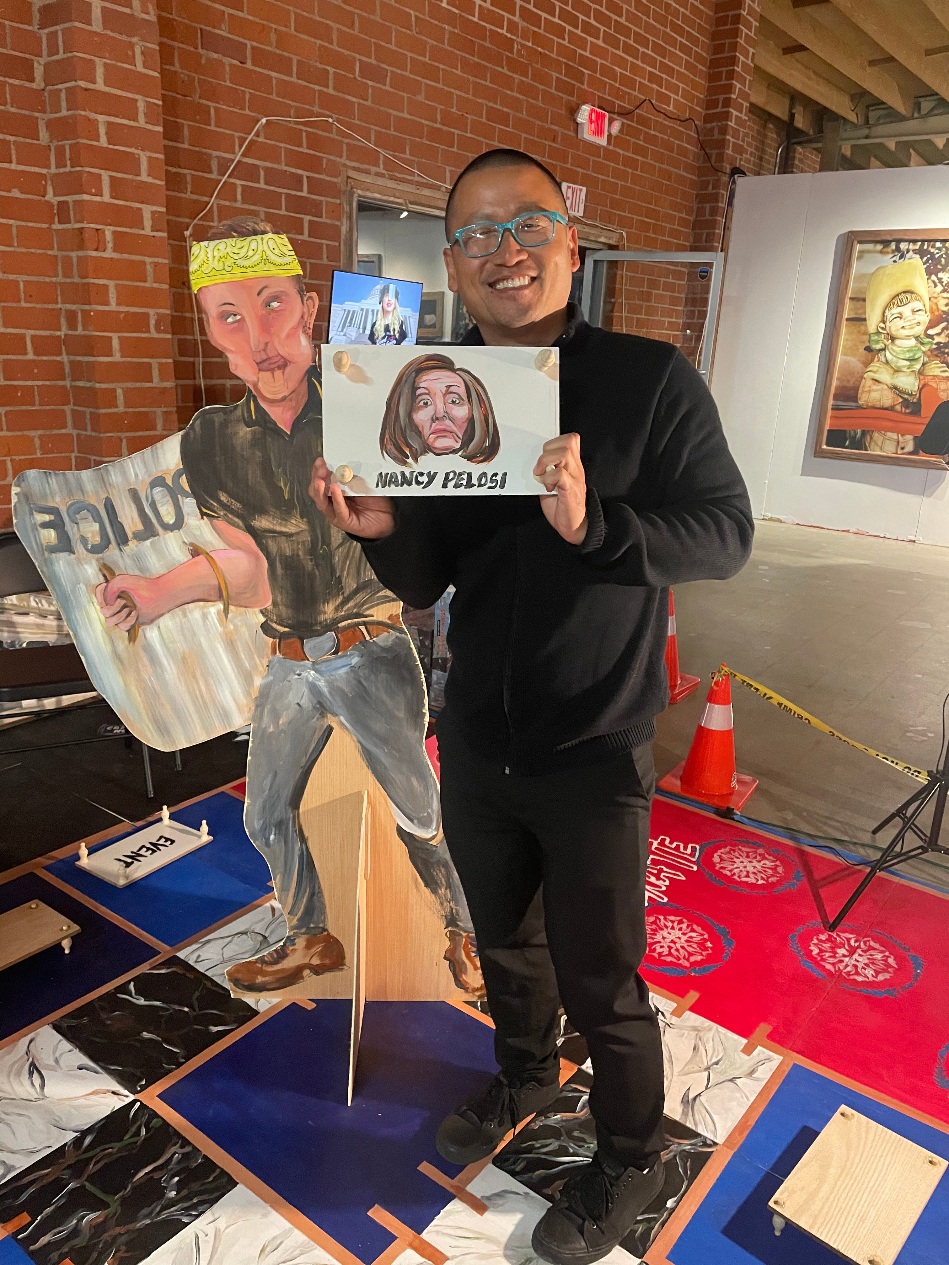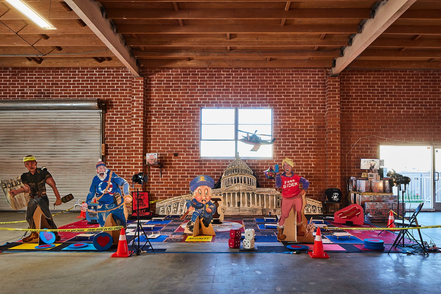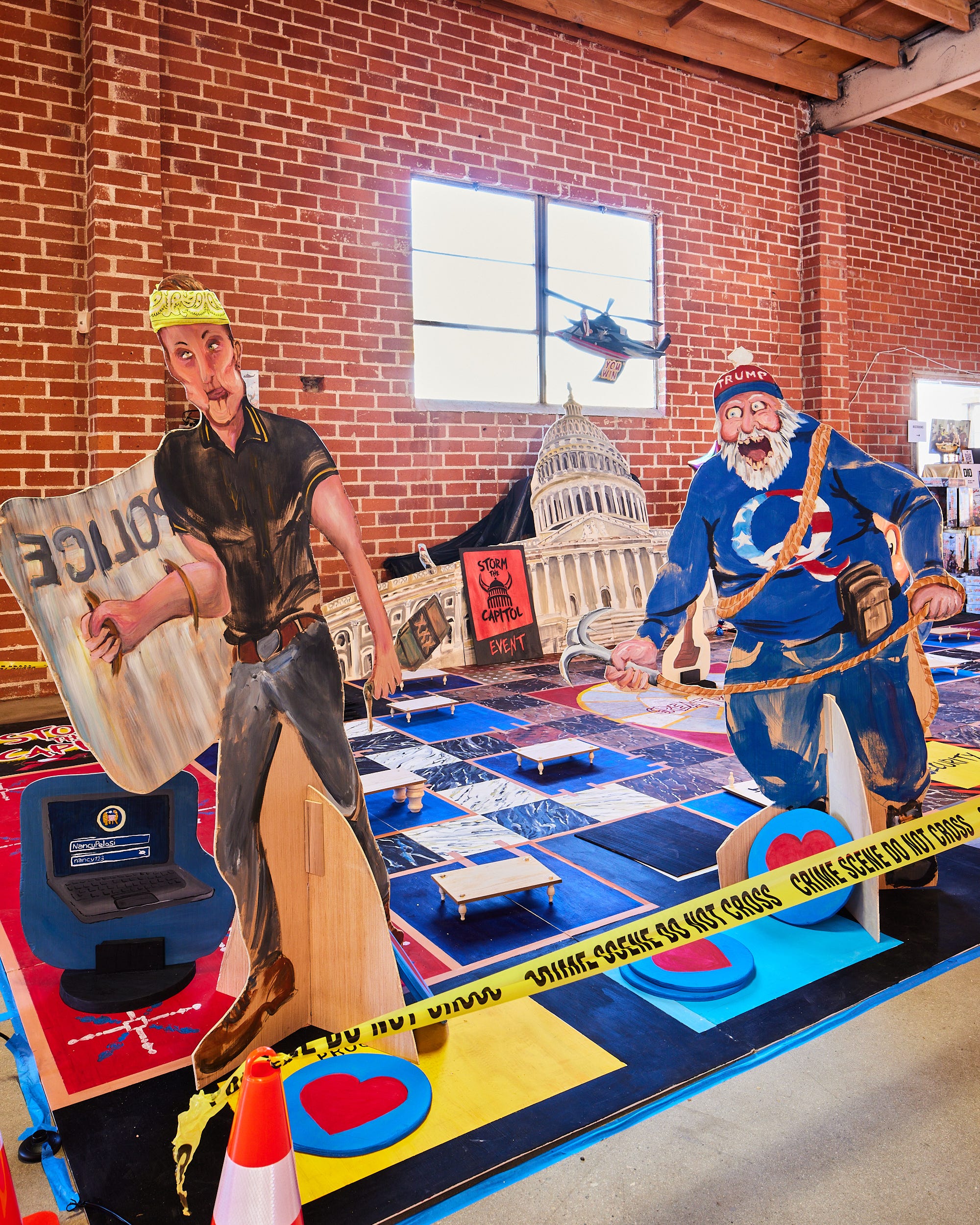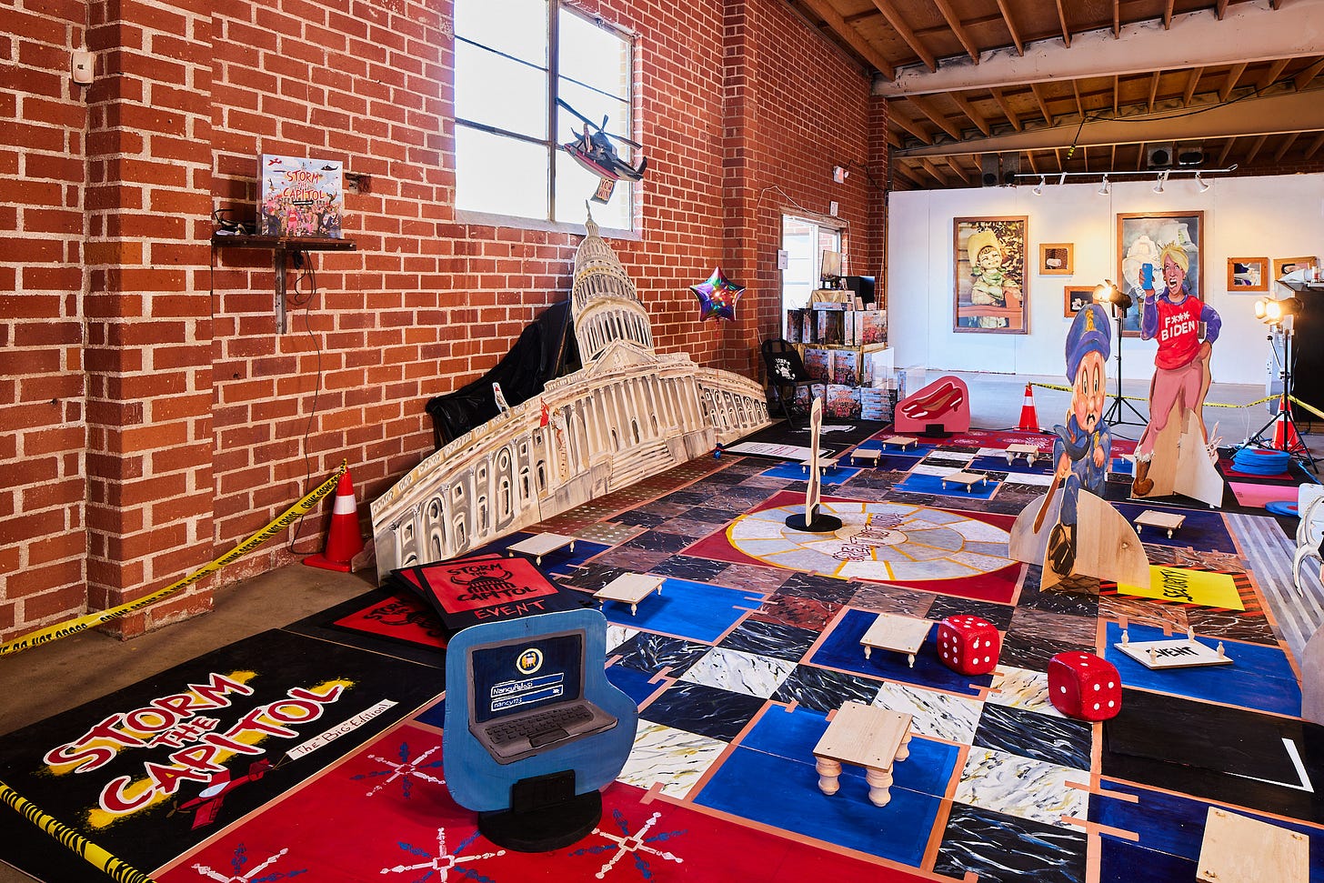 Based on our own hot-product family business board game enterprise, we have transformed the Trueanon sponsored hit game “Storm the Capitol: Insurrection in a box” into a life size sculptural installation. After selling out of 2000 games in 20 minutes on January 6th, we are now bringing the second “Speshal Edition” prototype to the fair— where 60 games will be available for purchase.